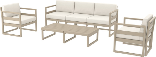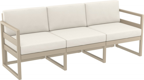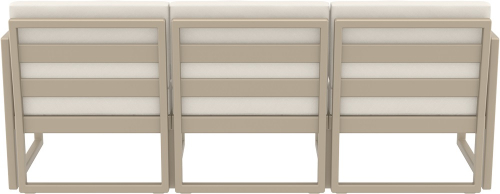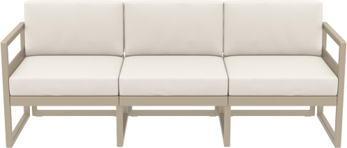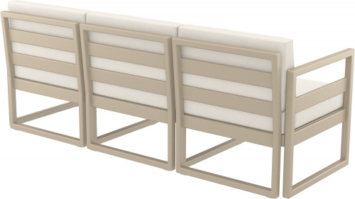 Модульный трехместный диван Mykonos предназначен для удобной самостоятельной сборки, изготовлен из прочного атмосферостойкого пластика, армированного стекловолокном. В комплекте идут удобные мягкие подушки, обеспечивающие дополнительный комфорт.