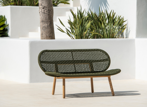Изогнутые линии и изысканный дизайн новой коллекции Skate определенно привлекут внимание и превратят открытое пространство в настоящее яркое зрелище. Двухместный диван из высококачественного итальянского каната в сочетании с алюминиевым каркасом с порошковым покрытием предназначен для небольших открытых пространств - террас, балконов, лаунж зон в саду.