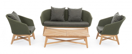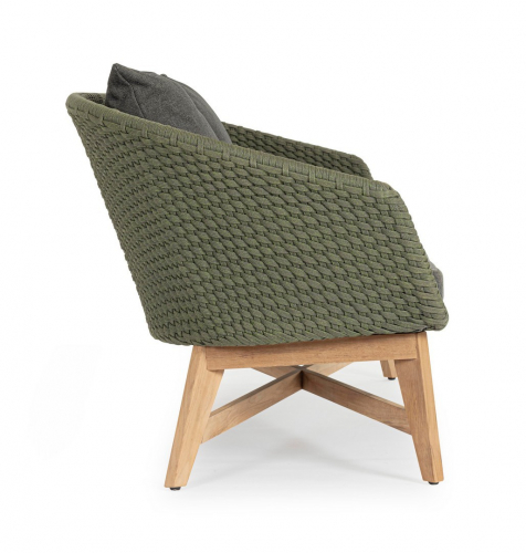 Спинка и подлокотники оплетены канатами из олефина (100% полипропилен).