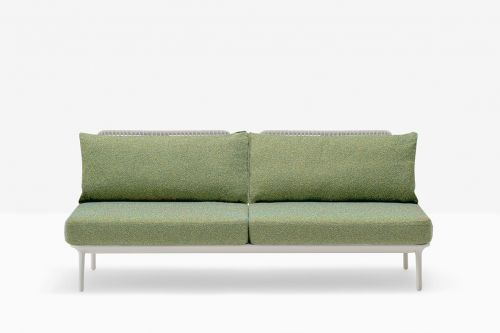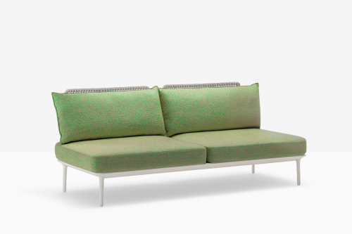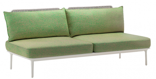 Версия Reva Cocoon с низкой спинкой, обладает отличительной особенностью в виде каркаса из нержавеющей стали, переплетенным веревкой из устойчивого к атмосферным воздействиям полипропилена, что придает всей коллекции по-настоящему естественный вид. Элемент каната, на 100% изготовленный в Италии опытными мастерами, обеспечивает жизненно важное уединение, сохраняя при этом предмет мебели воздушным и ярким благодаря более толстому плетению в нижней части и более свободному в верхней части. Прямой диван с каркасом из экструдированного алюминия, на концах которого установлены четыре конические ножки из литого под давлением алюминия. Ощущение обволакивания усиливается мягкими подушками, которые опираются на конструкцию.