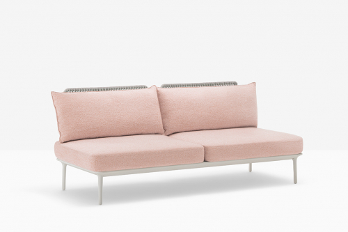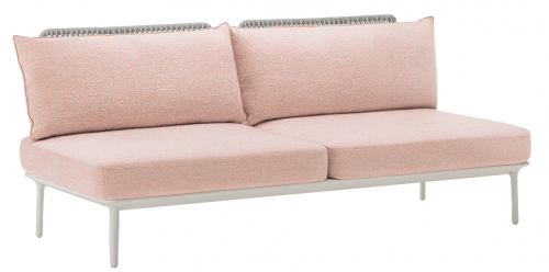 Версия Reva Cocoon с низкой спинкой, обладает отличительной особенностью в виде каркаса из нержавеющей стали, переплетенным веревкой из устойчивого к атмосферным воздействиям полипропилена, что придает всей коллекции по-настоящему естественный вид. Элемент каната, на 100% изготовленный в Италии опытными мастерами, обеспечивает жизненно важное уединение, сохраняя при этом предмет мебели воздушным и ярким благодаря более толстому плетению в нижней части и более свободному в верхней части. Прямой диван с каркасом из экструдированного алюминия, на концах которого установлены четыре конические ножки из литого под давлением алюминия. Ощущение обволакивания усиливается мягкими подушками, которые опираются на конструкцию.
