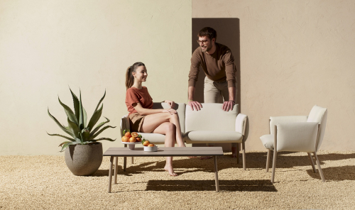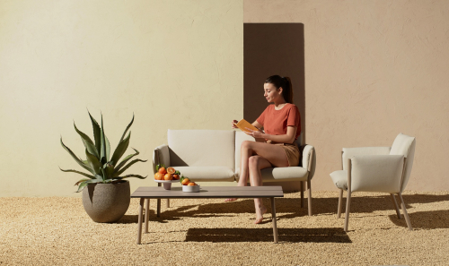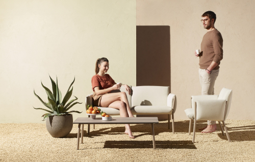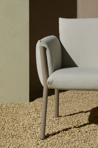 Семейство уличной мебели Brezza пополнилось двумя новыми моделями: лаунж-креслом и двухместным диваном. Оба унаследовали производственный подход от своего предшественника: мягкие подушки крепятся к каркасу без использования клея, кнопок, молний или липучек, что позволяет легко снимать чехлы и заменять их при необходимости, в соответствии с конструкционной предпосылкой, основанной на округлости.