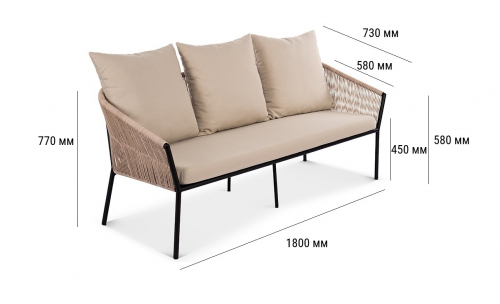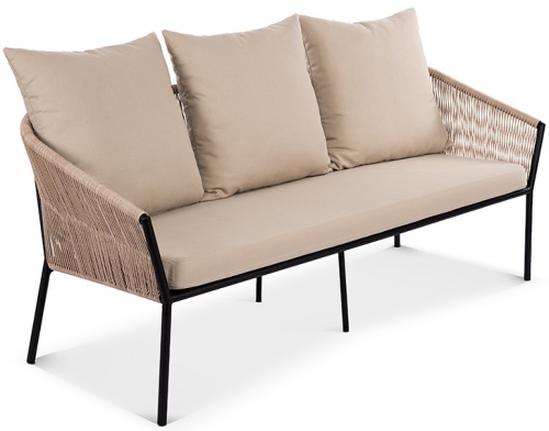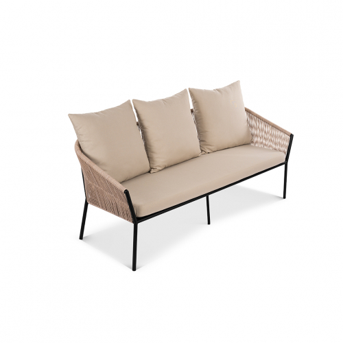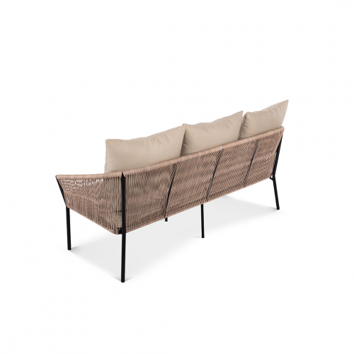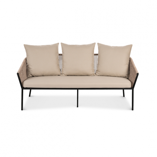 Коллекция Patio воплощает искусство создания уютного и элегантного пространства под открытым небом. Еe трeхместный диван, с его легким силуэтом и тонкими линиями, визуально расширяет границы террасы, наполняя еe ощущением воздушности и безмятежного отдыха. В основе дизайна - гармоничный синтез материалов: прочный цельносварной алюминиевый каркас, аккуратное плетение из стойкого искусственного ротанга и мягкие подушки из практичной уличной ткани. Полупрозрачный, ажурный контур, подчeркнутый тeмным металлом, создает аккуратную и современную композицию даже в компактных зонах.