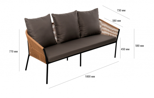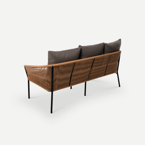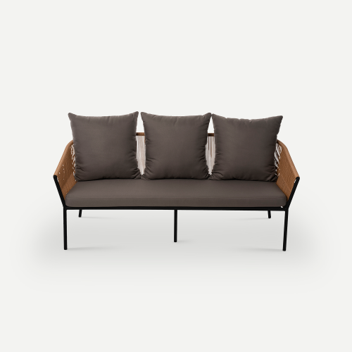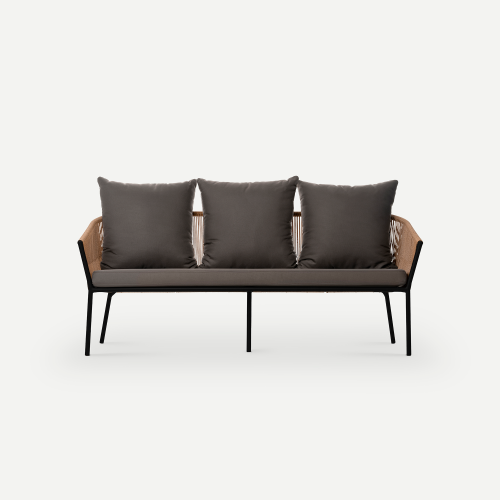 Коллекция Patio воплощает искусство создания уютного и элегантного пространства под открытым небом. Еe трeхместный диван, с его легким силуэтом и тонкими линиями, визуально расширяет границы террасы, наполняя еe ощущением воздушности и безмятежного отдыха. В основе дизайна - гармоничный синтез материалов: прочный цельносварной алюминиевый каркас, аккуратное плетение из стойкого искусственного ротанга и мягкие подушки из практичной уличной ткани. Полупрозрачный, ажурный контур, подчeркнутый тeмным металлом, создает аккуратную и современную композицию даже в компактных зонах.