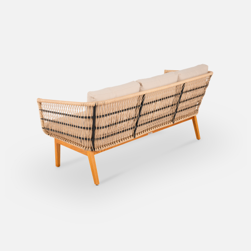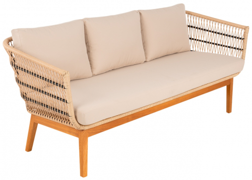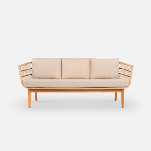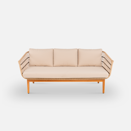 Конструкция дивана продумана для долговечной эксплуатации. Легкий алюминиевый каркас с порошковой окраской обеспечивает жесткость, а подушки из износостойкого олефина устойчивы к погодным условиям и быстро восстанавливают форму.