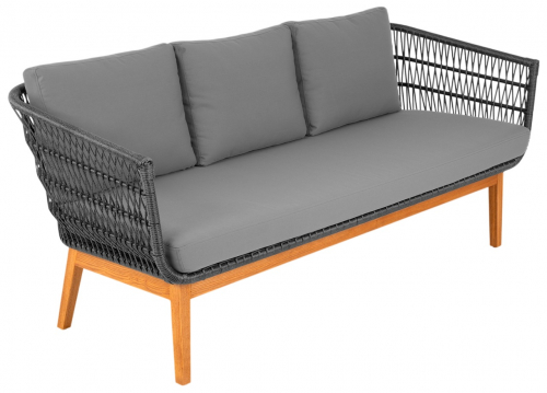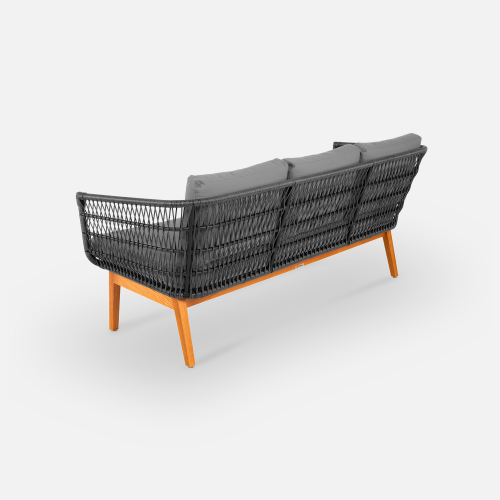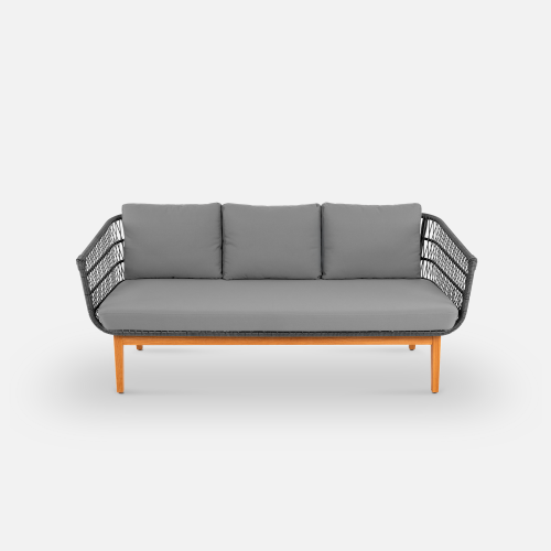 Конструкция дивана продумана для долговечной эксплуатации. Легкий алюминиевый каркас с порошковой окраской обеспечивает жесткость, а подушки из износостойкого олефина устойчивы к погодным условиям и быстро восстанавливают форму.