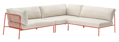 Модульный угловой диван с подушками станет прекрасным решением для обустройства зон отдыха на свежем воздухе: в саду, в отеле, на террасе ресторана или кафе. Мягкие подушки предусмотренные в комплекте обеспечивают максимальный комфорт и удобство, а стальной каркас долговечность и устойчивость конструкции.