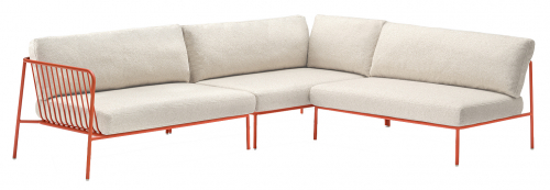 Модульный угловой диван с подушками станет прекрасным решением для обустройства зон отдыха на свежем воздухе: в саду, в отеле, на террасе ресторана или кафе. Мягкие подушки предусмотренные в комплекте обеспечивают максимальный комфорт и удобство, а стальной каркас долговечность и устойчивость конструкции.