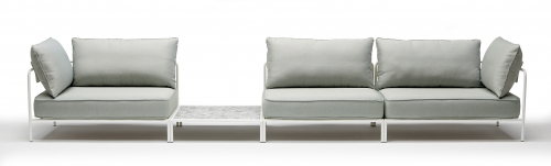 Flap – это коллекция модульной мягкой мебели, в которой элементы объединены по композиции с опорными поверхностями. Отличительной частью конструкции являются элементы в спинке, напоминающие по форме закрылки самолета, с функцией поддержки задних подушек и способные поворачиваться вокруг оси примерно на 15 градусов: это позволяет подушке иметь разный наклон для достижения максимально возможной степени комфорта. Модули Flap подходят для различных условий использования как в жилом, так и в контрактном секторах. Обивка подушек предлагается в тщательно подобранных различных текстурах, чтобы гармонично вписаться в классическую или современную обстановку на открытом воздухе. Подушки выполнены из акриловой ткани и предназначены для использования на улице. Дополнением к элементам служит приставной кофейный столик с окрашенной стальной рамой и столешницей из компакт-ламината HPL.