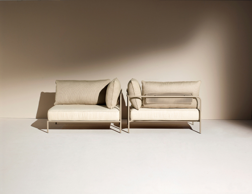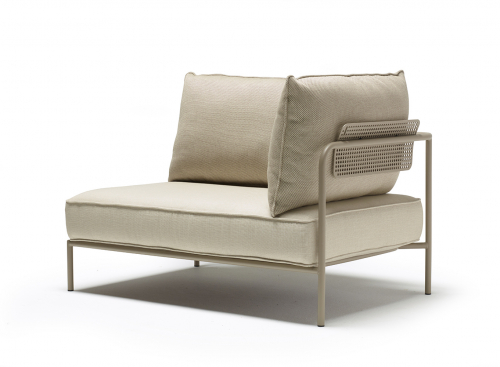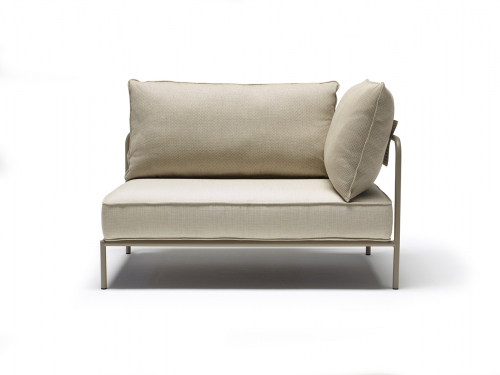 Flap – это коллекция модульной мягкой мебели, в которой элементы объединены по композиции с опорными поверхностями. Отличительной частью конструкции являются элементы в спинке, напоминающие по форме закрылки самолета, с функцией поддержки задних подушек и способные поворачиваться вокруг оси примерно на 15 градусов: это позволяет подушке иметь разный наклон для достижения максимально возможной степени комфорта. Модули Flap подходят для различных условий использования как в жилом, так и в контрактном секторах. Обивка подушек предлагается в тщательно подобранных различных текстурах, чтобы гармонично вписаться в классическую или современную обстановку на открытом воздухе. Подушки выполнены из акриловой ткани и предназначены для использования на улице. Дополнением к элементам служит приставной кофейный столик с окрашенной стальной рамой и столешницей из компакт-ламината HPL.