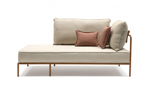 Flap – это коллекция модульной мягкой мебели, в которой элементы объединены по композиции с опорными поверхностями. Отличительной частью конструкции являются элементы в спинке, напоминающие по форме закрылки самолета, с функцией поддержки задних подушек и способные поворачиваться вокруг оси примерно на 15 градусов: это позволяет подушке иметь разный наклон для достижения максимально возможной степени комфорта. Модули Flap подходят для различных условий использования как в жилом, так и в контрактном секторах. Обивка подушек предлагается в тщательно подобранных различных текстурах, чтобы гармонично вписаться в классическую или современную обстановку на открытом воздухе. Подушки выполнены из акриловой ткани и предназначены для использования на улице. Дополнением к элементам служит приставной кофейный столик с окрашенной стальной рамой и столешницей из компакт-ламината HPL.