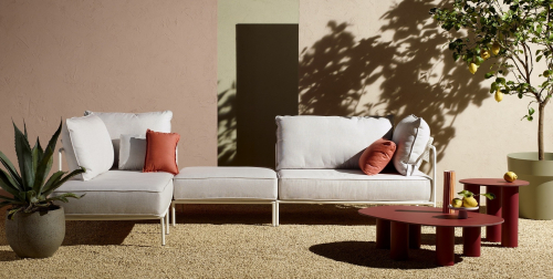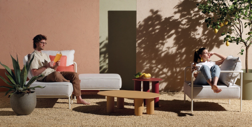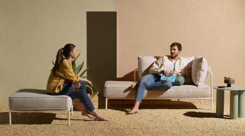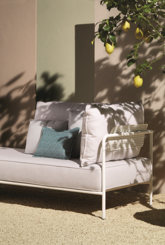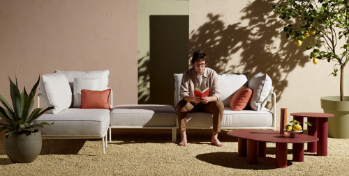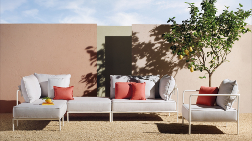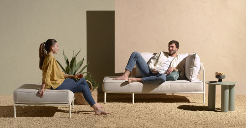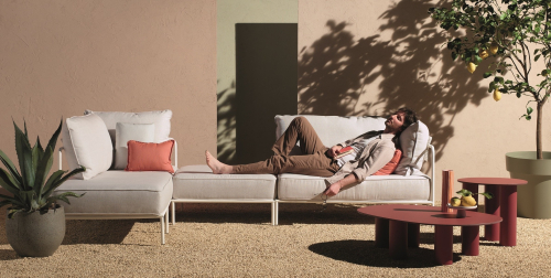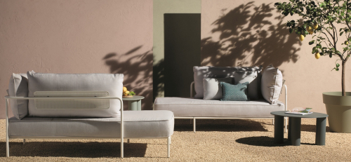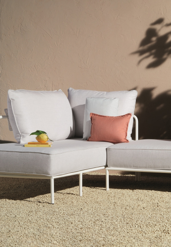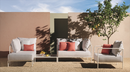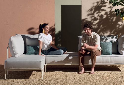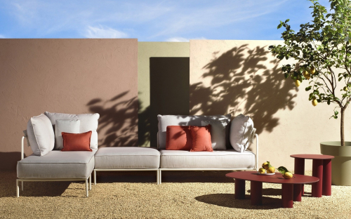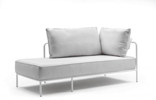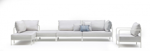 Flap – это коллекция модульной мягкой мебели, в которой элементы объединены по композиции с опорными поверхностями. Отличительной частью конструкции являются элементы в спинке, напоминающие по форме закрылки самолета, с функцией поддержки задних подушек и способные поворачиваться вокруг оси примерно на 15 градусов: это позволяет подушке иметь разный наклон для достижения максимально возможной степени комфорта. Модули Flap подходят для различных условий использования как в жилом, так и в контрактном секторах. Обивка подушек предлагается в тщательно подобранных различных текстурах, чтобы гармонично вписаться в классическую или современную обстановку на открытом воздухе. Подушки выполнены из акриловой ткани и предназначены для использования на улице. Дополнением к элементам служит приставной кофейный столик с окрашенной стальной рамой и столешницей из компакт-ламината HPL.