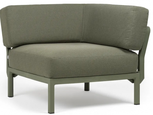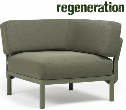 Изысканный, эстетически привлекательный дизайн: чистые и сбалансированные линии развиваются горизонтально, создавая ощущение глубины и длины; структура из переработанного пластика является цельной и прочной, но визуально облегченной за счет модульных треугольных секций и закругленных деталей. Большие объемы, удобное, глубокое сиденье и гибкая, гармоничная модульность.