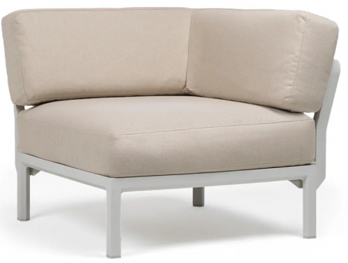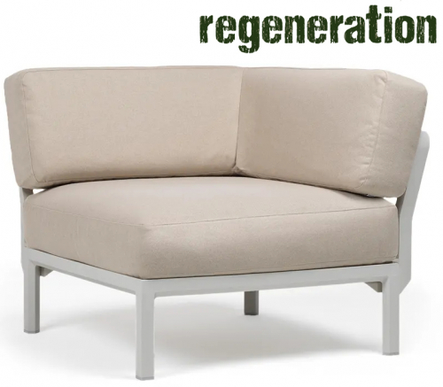 Изысканный, эстетически привлекательный дизайн: чистые и сбалансированные линии развиваются горизонтально, создавая ощущение глубины и длины; структура из переработанного пластика является цельной и прочной, но визуально облегченной за счет модульных треугольных секций и закругленных деталей. Большие объемы, удобное, глубокое сиденье и гибкая, гармоничная модульность.