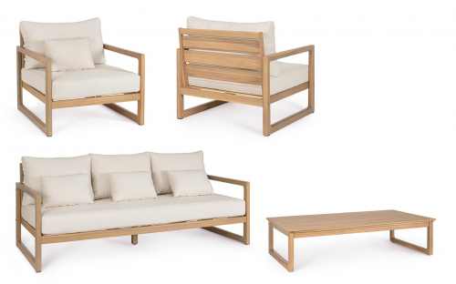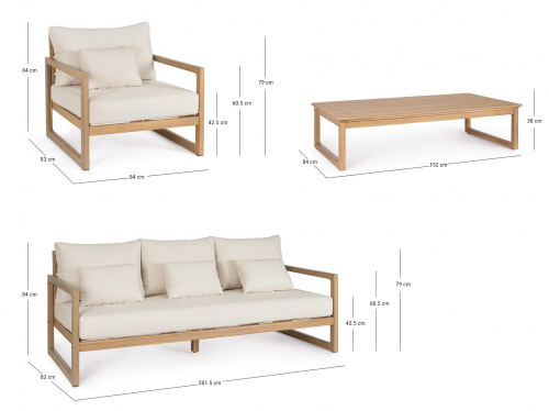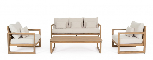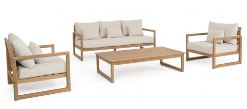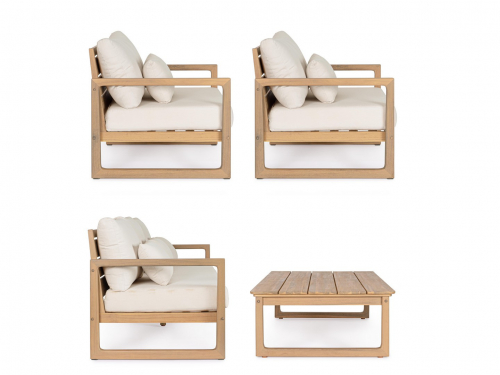 Комплект Adrian предлагает практичное и визуально гармоничное решение для обустройства зон отдыха на террасах, в садах и на патио. Изделия сочетают натуральную древесину акации с современными материалами, обеспечивая долговечность и гармоничный внешний вид.