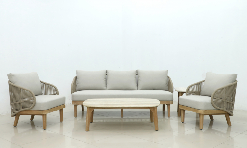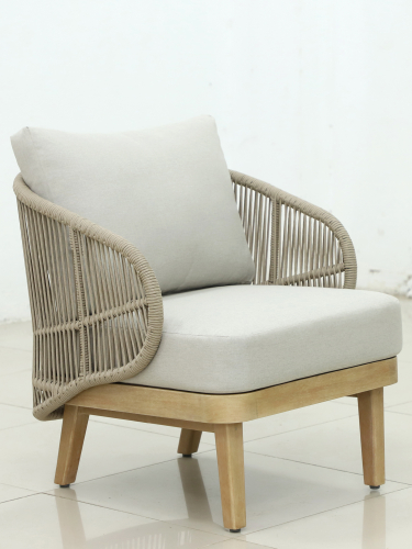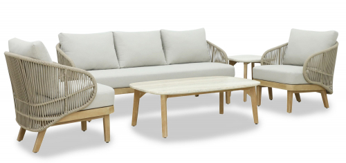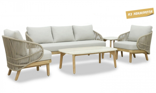 Эксклюзивная коллекция Mali приглашает вас окунуться в стиль и безмятежность на открытом воздухе. Кресла и диван, вдохновленные побережьем, имеют прочный алюминиевый каркас, оплетенный роупом, очаровательные ножки из эвкалипта и мягкие, удобные подушки, предназначенные для круглогодичного отдыха на открытом воздухе и развлечений. Кофейный столик выполнен из эвкалипта, столешница - из искусственного камня Travertine.