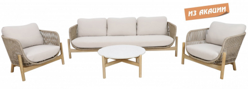 Talara - это современная коллекция садовой мебели из акации, выполненная в комбинации натурального веревочного плетения роуп, акации и светлых подушек. Цвет натуральной твердой древесины представляет собой натуральный цвет с мелкой текстурой, придающий древесине приятный теплый вид.
