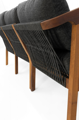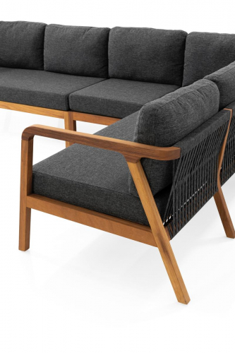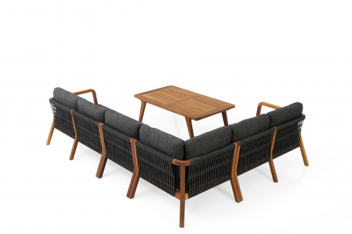 Комплект мебели Idea отличается своей долговечностью, устойчивостью к сезонным изменениям, солнечному свету и другим внешним факторам и представляет собой долгосрочную инвестицию. Использование эксклюзивных материалов, таких как дерево ироко, тщательное мастерство плетения из роупа ручной работы и особые свойства тканей для уличного использования - все это украсит Ваше жилое пространство и позволит максимально насладиться отдыхом на свежем воздухе.