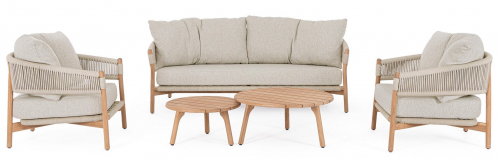 Garita – это комплект лаунж мебели из тика и высококачественным плетением. Он станет прекрасным дополнением для разнообразных открытых пространств различных проектов. Великолепная комбинация плетения из роупа, которое обвивается вокруг рамы из тика, славящегося своей прочностью и надежностью, позволяющей использовать мебель из этой древесины на свежем воздухе, придает модели гостеприимный и домашний характер.
