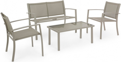 Лаунж комплект мебели Peder состоит из двух кресел, двухместного дивана и кофейного столика. Набор идеально подойдет для обустройства террасы или летней площадки частного дома.