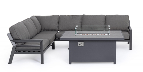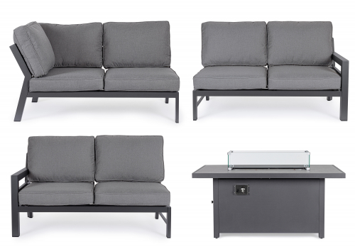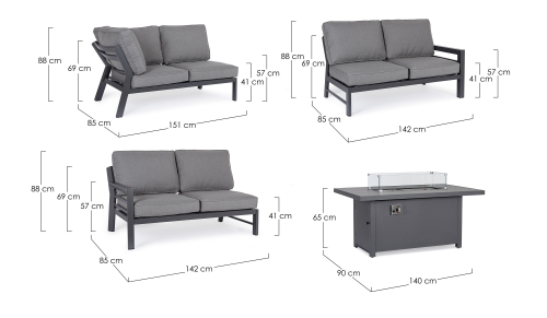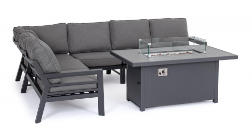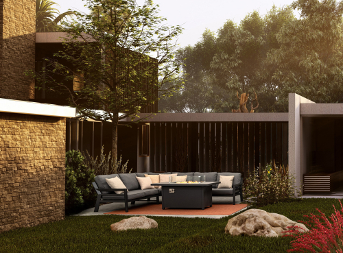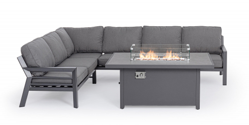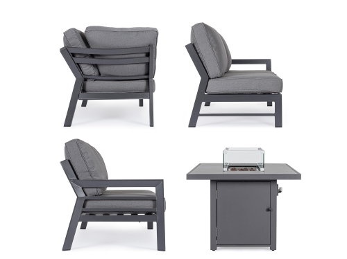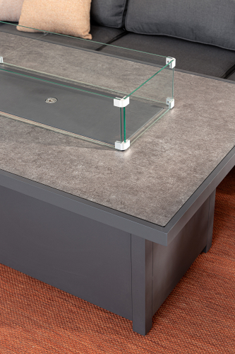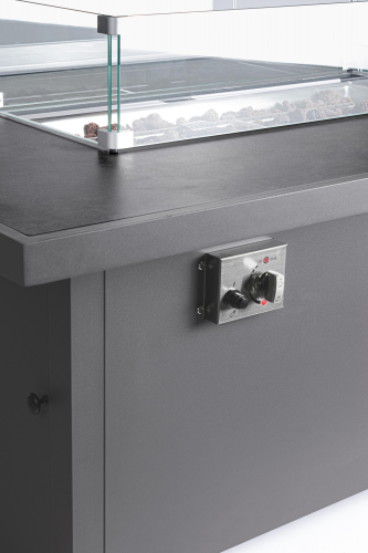 - Стол из алюмминия с порошковым покрытием с камином со стеклянной столешницей: стол с камином придает садовой мебели элегантный вид. Стеклянная столешница толщиной 8 мм с трафаретной печатью с отделкой "под керамику" делает его идеальным местом для посиделок в саду и вечерних бесед.