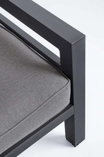 - Прочный алюминиевый каркас с порошковым покрытием (полиэстер): обеспечивает устойчивость и долговечность мебели, а порошковое покрытие обеспечивает дополнительную защиту от атмосферных воздействий и коррозии.