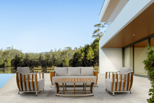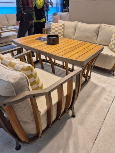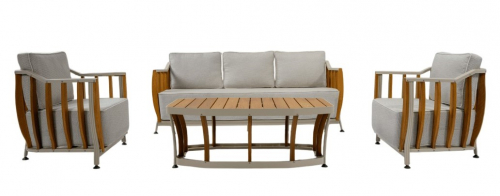 Стильный и функциональный лаунж комплект Storm - превосходное решение для создания уютного пространства для отдыха на свежем воздухе. Двойная структура, сочетающая металл и планки из ироко, создает гармоничное чередование линий и материалов, добавляя изысканности и современности вашему пространству. Легкий, но прочный алюминиевый каркас обеспечивает долговечность, а элементы из массива ироко придают мебели теплоту и благородство.