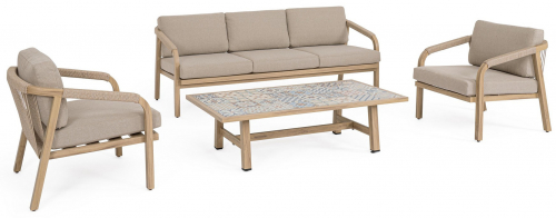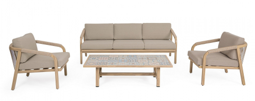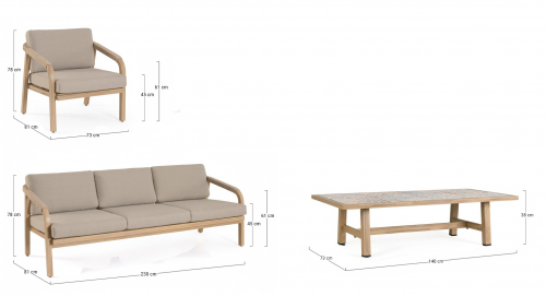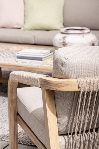 Лаунж комплект мебели Kalimera - это современное и функциональное решение для создания уютной зоны отдыха на террасе, в саду или на патио. Дизайн сочетает в себе натуральные оттенки и современные формы, идеально вписывающиеся в любое пространство.