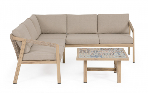 Угловой лаунж комплект мебели Kalimera - это современное и функциональное решение для создания уютной зоны отдыха на террасе, в саду или на патио. Дизайн сочетает в себе натуральные оттенки и современные формы, идеально вписывающиеся в любое пространство.