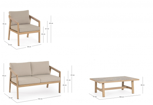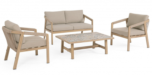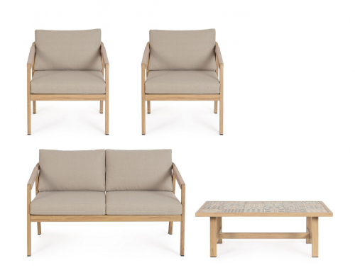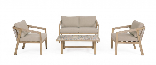 Лаунж комплект мебели Kalimera - это современное и функциональное решение для создания уютной зоны отдыха на террасе, в саду или на патио. Дизайн сочетает в себе натуральные оттенки и современные формы, идеально вписывающиеся в любое пространство.