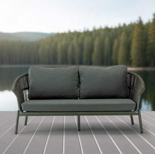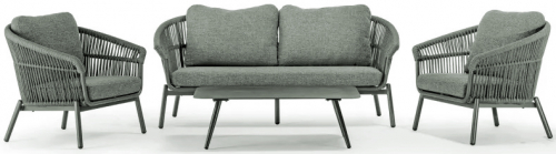Садовый комплект для отдыха Tropea сочетает в себе современный дизайн, высокий комфорт и долговечность материалов. Он состоит из двух кресел, двухместного дивана и журнального столика с алюминиевой столешницей и идеально подходит для стильных открытых пространств. Алюминиевый каркас обтянут текстильным канатом толщиной 8 мм, а подушки из олефина с быстросохнущим пеноматериалом обеспечивают максимальный комфорт.