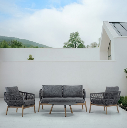 Садовый комплект для отдыха Alicante сочетает в себе современный дизайн, высокий комфорт и долговечность материалов. Он состоит из двух кресел, двухместного дивана и журнального столика с алюминиевой столешницей и идеально подходит для стильных открытых пространств. Каркас выполнен из тика, рама корпуса изготовлена из алюминия и обтянута полиолефиновым канатом толщиной 9 мм. Подушки из олефина с быстросохнущим пеноматериалом обеспечивают максимальный комфорт.
