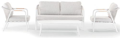 Cordoba - это комплект мебели, безупречно сочетающий в себе стиль и практичность, идеально подходящий для стильного оформления пространства на открытом воздухе. Сиденья, а именно двухместный диван и два кресла, выполнены из легкого окрашенного алюминия и украшены элегантными вставками из тикового дерева на подлокотниках – стильная деталь, которая приковывает взгляд. Эргономичная и уютная форма сиденья, выполненного из полиолефинового канатного плетения, и мягкие съемные подушки из олефиновой ткани с быстросохнущим пеноматериалом гарантируют максимальный отдых. В комплект также включен низкий квадратный столик из алюминия.
