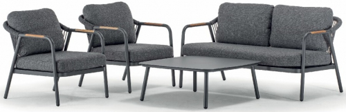 Cordoba - это комплект мебели, безупречно сочетающий в себе стиль и практичность, идеально подходящий для стильного оформления пространства на открытом воздухе. Сиденья, а именно двухместный диван и два кресла, выполнены из легкого окрашенного алюминия и украшены элегантными вставками из тикового дерева на подлокотниках – стильная деталь, которая приковывает взгляд. Эргономичная и уютная форма сиденья, выполненного из полиолефинового канатного плетения, и мягкие съемные подушки из олефиновой ткани с быстросохнущим пеноматериалом гарантируют максимальный отдых. В комплект также включен низкий квадратный столик из алюминия.