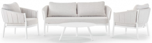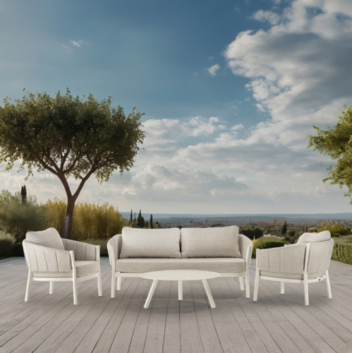 Садовый комплект мебели Grid сочетает в себе исключительный дизайн, непревзойденный комфорт и высокое качество изготовления. Этот стильный комплект состоит из двух кресел, двухместного дивана и журнального столика с алюминиевой столешницей. Прочный алюминиевый каркас обеспечивает устойчивость к погодным условиям, а олефиновые подушки обеспечивают максимальный комфорт и простоту ухода.