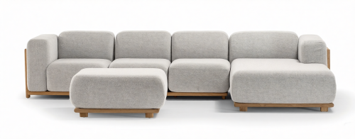 Эта мебель создана для жизни в движении. Легкая алюминиевая рама, скрытая внутри, обеспечивает каркасу прочность и устойчивость. А технологичные материалы - быстросохнущий наполнитель Quick Dry Foam и износостойкая ткань из олефина - делают её неуязвимой для капризов погоды. Свобода выбора за вами: компануйте модули и наслаждайтесь безупречным комфортом как в интерьере гостиной, так и на открытой террасе.