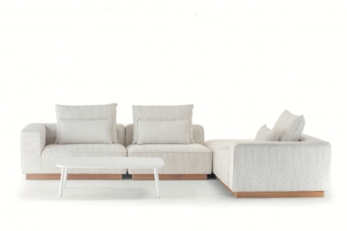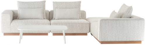 Комплект мебели для отдыха Don - это универсальный модульный комплект мебели для гостиной, сочетающий максимальный комфорт и неподвластный времени дизайн. Он состоит из двух диванных, центральной секции, пуфа и журнального столика. Сочетание прочного алюминиевого каркаса с элегантными деталями из тика обеспечивает стильный внешний вид и высокую прочность. Подушки наполнены быстросохнущим пеноматериалом Fast Dry Foam и обтянуты водоотталкивающей и простой в уходе олефиновой тканью - идеально для использования на улице круглый год.