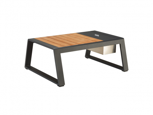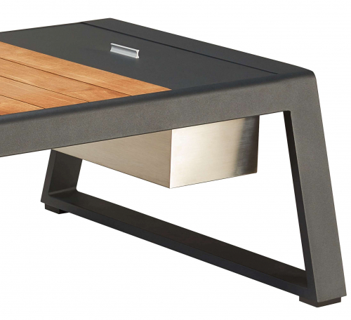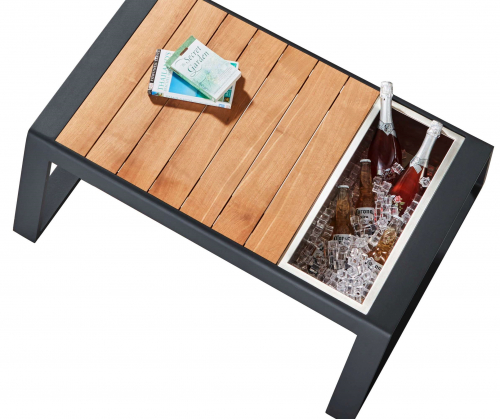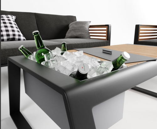 Изюминкой всей коллекции является кофейный столик, оснащенный специальным съемным контейнером из нержавеющей стали: чтобы всегда иметь под рукой охлажденный напиток, во время отдыха, в одиночестве или в приятной компании, на свежем воздухе.
