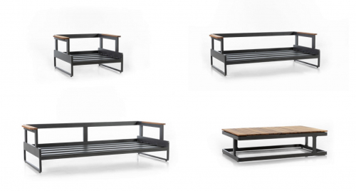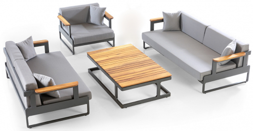 Selen представляет собой комплект, состоящий из кресла, 2-х и 3-х местных диванов, мягкие подушки которых обеспечивают удобство и комфорт во время сидения, и кофейного столика. Коллекция позволяет создавать бесконечные комбинации для зоны отдыха на открытом воздухе.