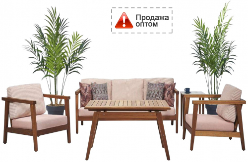 Likya представляет собой комплект, рассчитанный на 5 персон, состоящий из 2-х кресел, трехместного дивана и кофейного столика, которые обеспечивают удобство и комфорт во время сидения. Комплект обладает приятным дизайном, который придает ощущение гостеприимства и теплоты. Максимальное удобство обеспечивают мягкие подушки из материалов для применения на улице. Комплект предназначен для использования на улице: летние площадки различных заведений, частные террасы, дворики загородных домов. Он дает возможность с наслаждением проводить время на свежем воздухе.