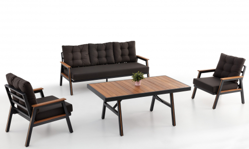 Madrid - уличный лаунж-комплект, который привлекает внимание своим стильным внешним видом и элегантным сочетанием нескольких материалов. Он выполнен в соответствии с системой менеджмента качества ISO 9001. Подходит для использования в самых разнообразных пространствах, таких как сад, балкон, терраса, зона у бассейна, пляж, зона отдыха в офисе и дома.