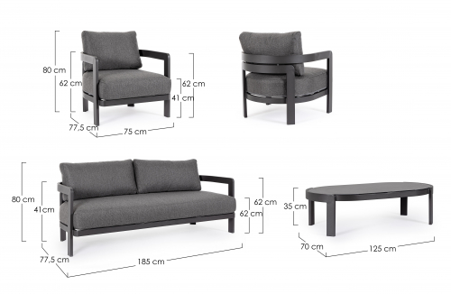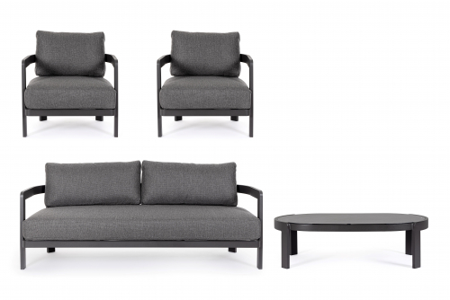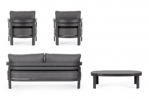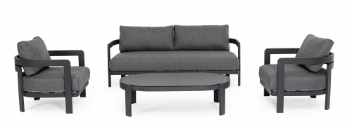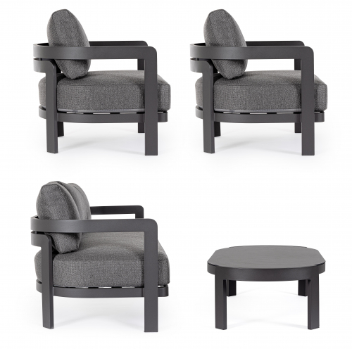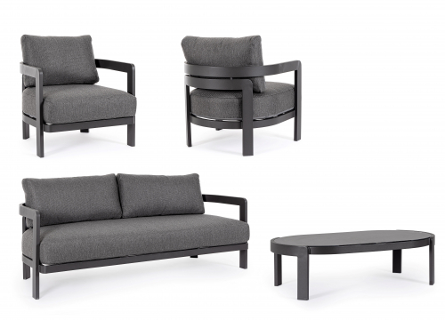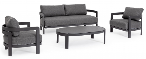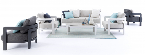 Комплект лаунж мебели Presley преобразит ваш сад, террасу или патио в уютное и стильное пространство. Алюминиевая рама с долговечным полиэстерным покрытием гарантирует устойчивость к непогоде, а мягкие подушки со съемными чехлами из водоотталкивающей олефиновой ткани подарят вам наслаждение отдыхом.