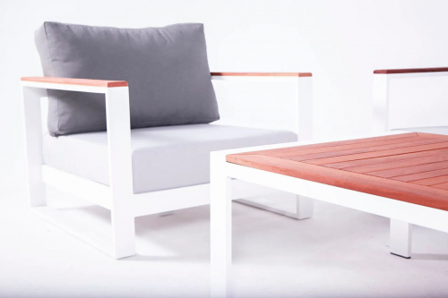 Bolero XL – это комплект металлической лаунж мебели, подходящий для обустройства зоны отдыха, который привлекает к себе внимание контрастом фактур. Он удачно вписывается в обстановку в современном стиле. Каркас всего комплекта выполнен из крепкого алюминия, который обеспечивает надежность и устойчивость конструкции, а подлокотники и столешница столика – из дерева ироко, которое отличается своей прочностью, а также устойчивостью к перепадам температуры и влажности. Станет идеальным вариантом для использования на летних площадках различных заведений, но также подходит для частных террас и открытых пространств.