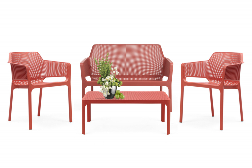 Net - удобный и романтический комплект из стеклопластика для использования на открытом воздухе. Четкие силуэты и тонкие профили отличает мебель этой коллекции. Диван Net Bench вместе с креслами Net и журнальным столом Net Table дополняет Nardi Net Collection, обогащая её новой привлекательностью, перед которой невозможно устоять. Разработанный для домашних условий, но соответствующий требованиям сферы Contract, комплект Net – это отличный способ для обстановки даже самого изысканного открытого пространства, производя творческие комбинации со стилем и цветом.