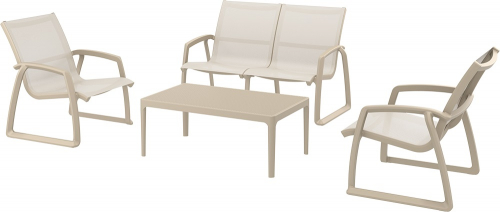 Комплект коллекции Pacific идеально подходит для домашнего или коммерческого использования. Каркас выполнен из атмосферостойкого, защищенного от ультрафиолетового излучения пластика, армированного стекловолокном, покрытие сиденья и спинки - из ткани батилин от Serge Ferrari. Мебель выдерживает летние дожди и сильное солнце, что делает ее идеальным дополнением к вашей зоне отдыха на открытом воздухе.