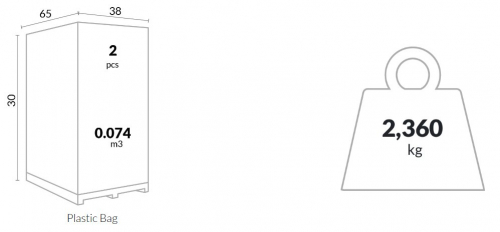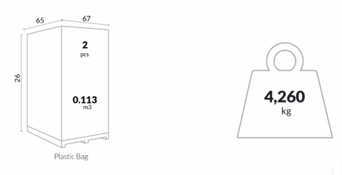 Размер упаковки 1320х660х460 мм; 2х 260х650х670 мм; 2х 300х650х380 мм