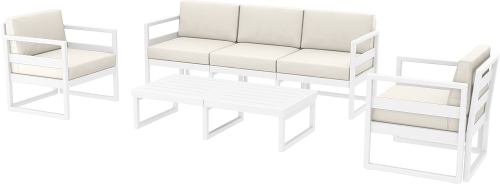 Комплект Mykonos Lounge Set XL предназначен для удобной самостоятельной сборки, изготовлен из прочного атмосферостойкого пластика, армированного стекловолокном. В комплекте идут удобные мягкие подушки, обеспечивающие дополнительный комфорт.