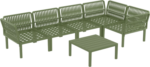 Комплект Portofino Lounge Corner Set от турецкой фабрики Siesta Contract представляет собой стильное и надежное решение для уличного использования в сферах HoReCa и Contract. Выполненная из высококачественного полипропилена, армированного стекловолокном, мебель комплекта отличается исключительной прочностью и устойчивостью к воздействию внешней среды. Благодаря новейшим технологиям формования пластмасс под давлением, материал устойчив к выцветанию и деформации, а нескользящие ножки обеспечивают безопасность и стабильность как внутри помещений, так и на улице. Особый акцент сделан на обволакивающей спинке, плавно переходящей в подлокотники, с 3D-эффектом плетения из плоского роупа, что придает мебели современный вид и визуально напоминает натуральное плетение, сохраняя при этом преимущества пластика.