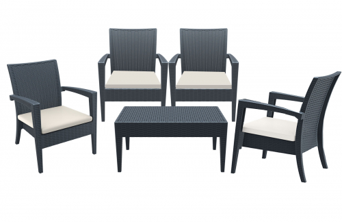 Комплект пластиковой плетеной мебели Miami Lounge-2 изготовлен из прочного погодостойкого пластика, армированного стекловолокном. Комплект пластиковой плетеной мебели Miami Lounge с имитацией плетения натурального ротанга станет отличным выбором для обстановки лаунж-зоны в любом заведении. Благодаря использованию высококачественных материалов он долгое время не теряет своего привлекательного внешнего вида, даже несмотря на активную эксплуатацию. Благодаря отсутствию металлического каркаса и устойчивости к ультрафиолетовому воздействию комплект плетеной мебели из пластика Miami Lounge можно использовать в том числе и на открытых площадках.
