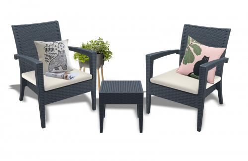 Комплект пластиковой плетеной мебели Miami Lounge-2 изготовлен из прочного погодостойкого пластика, армированного стекловолокном. Комплект пластиковой плетеной мебели Miami Lounge с имитацией плетения натурального ротанга станет отличным выбором для обстановки лаунж-зоны в любом заведении. Благодаря использованию высококачественных материалов он долгое время не теряет своего привлекательного внешнего вида, даже несмотря на активную эксплуатацию. Благодаря отсутствию металлического каркаса и устойчивости к ультрафиолетовому воздействию комплект плетеной мебели из пластика Miami Lounge можно использовать в том числе и на открытых площадках.